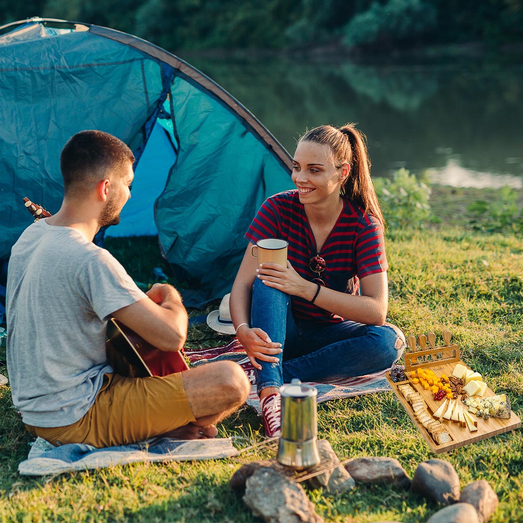 Wer sagt, dass Camping nicht stilvoll sein kann? Dies ist das perfekte Picknick-Set. Genießen Sie die einfachen Genüsse von Käse und Wurstwaren, während Sie die Schönheit der Natur genießen